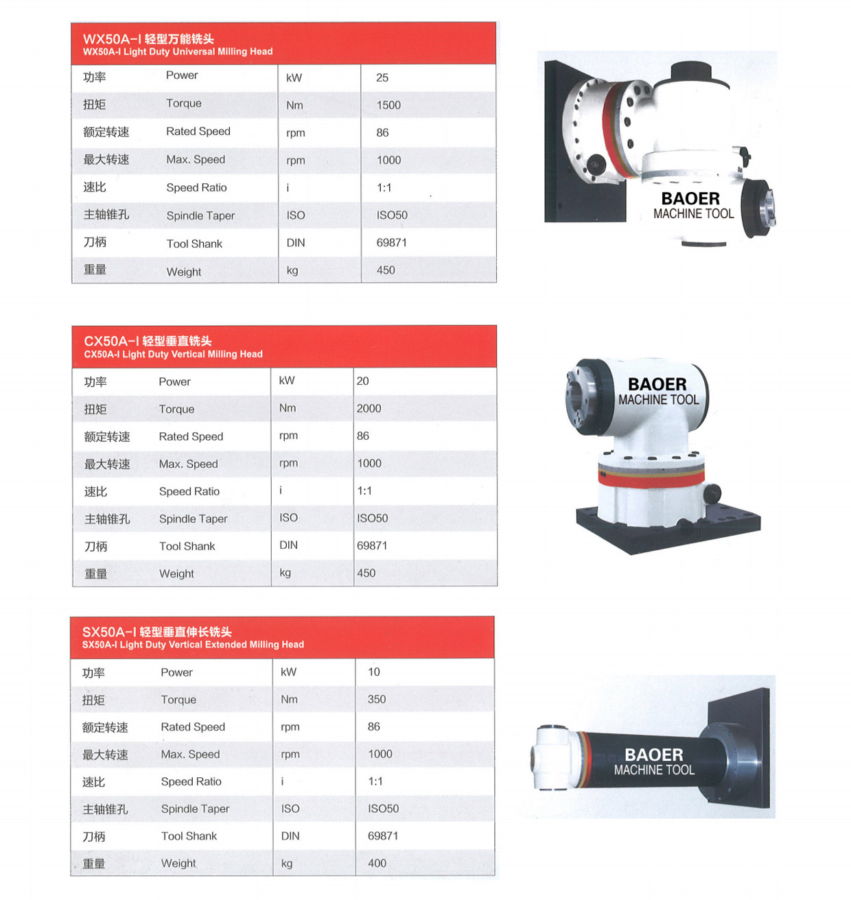 輕型(xíng)銑頭:适用于(yú)直徑1 30mm以下主(zhu)軸的各類機(jī)床
