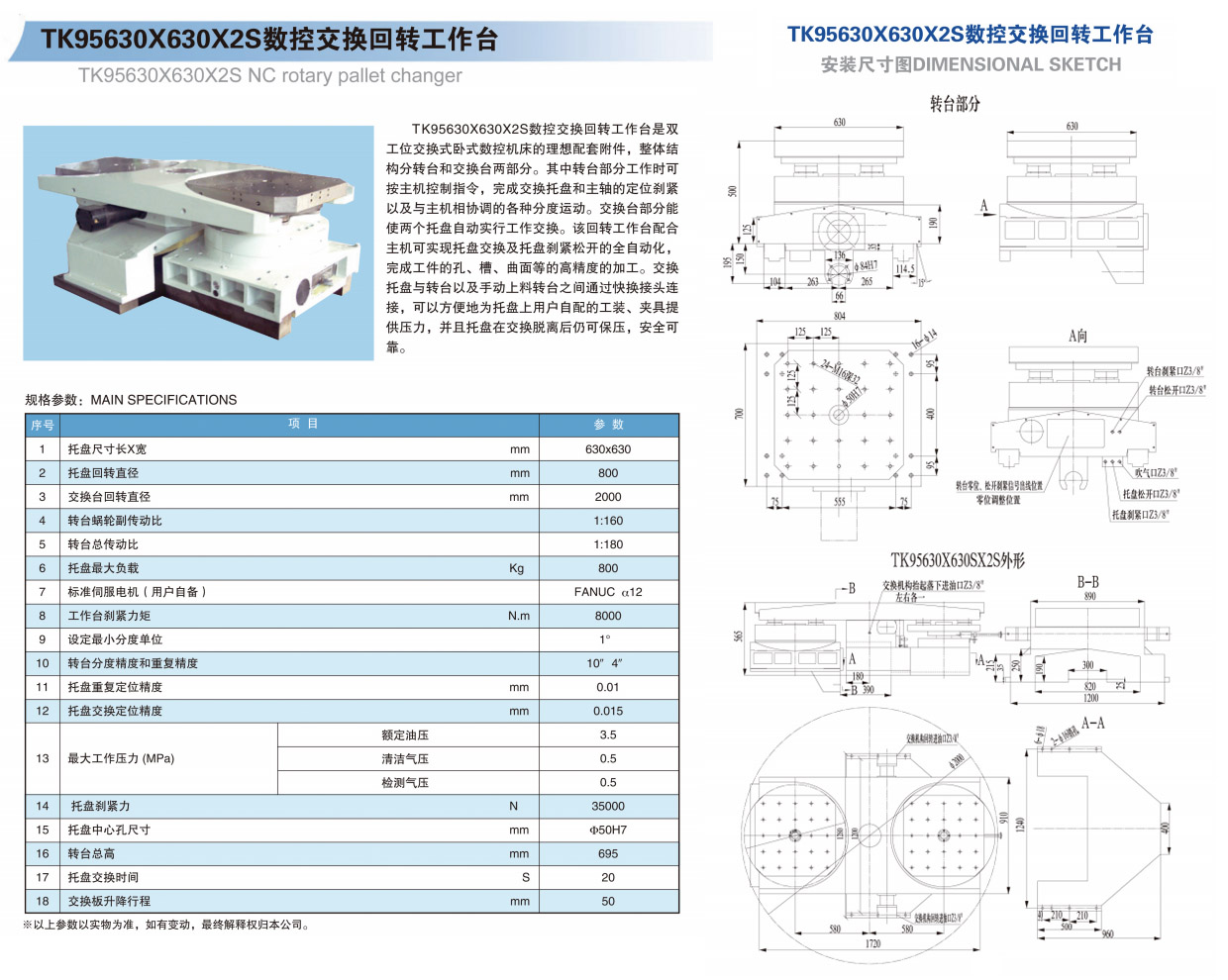 TK95630X630X2S數控交換回轉(zhuǎn)工作台